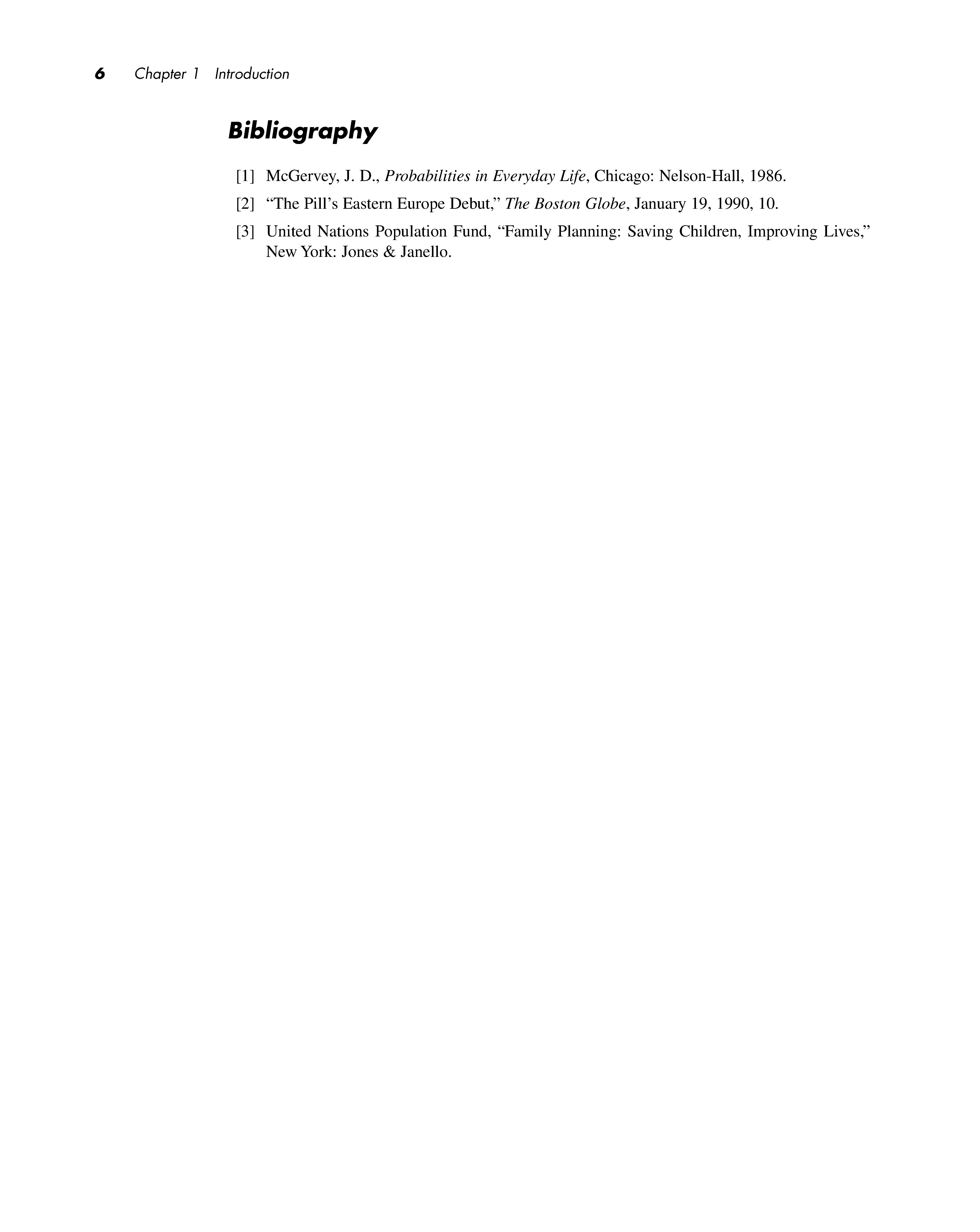 [1] McGervey, J.D., Probabilities in Everyday Life, Chicago: Nelson-Hall, 1986.