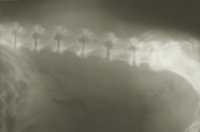 FIGURE 3–13 Radiograph of a cat, showing the thoracic and lumbar spine. Ribs and sternum are also visible.