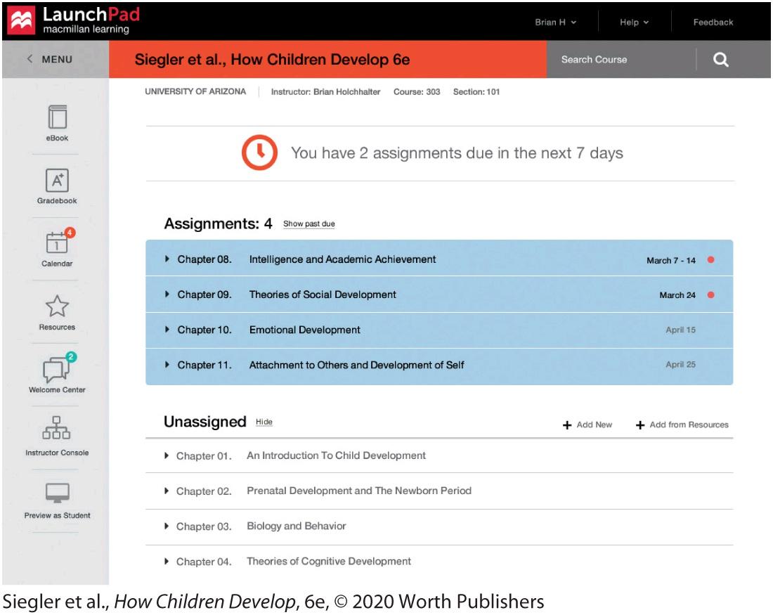 LaunchPad for HowChildren Develop, Sixth Edition, includesthe following resources: