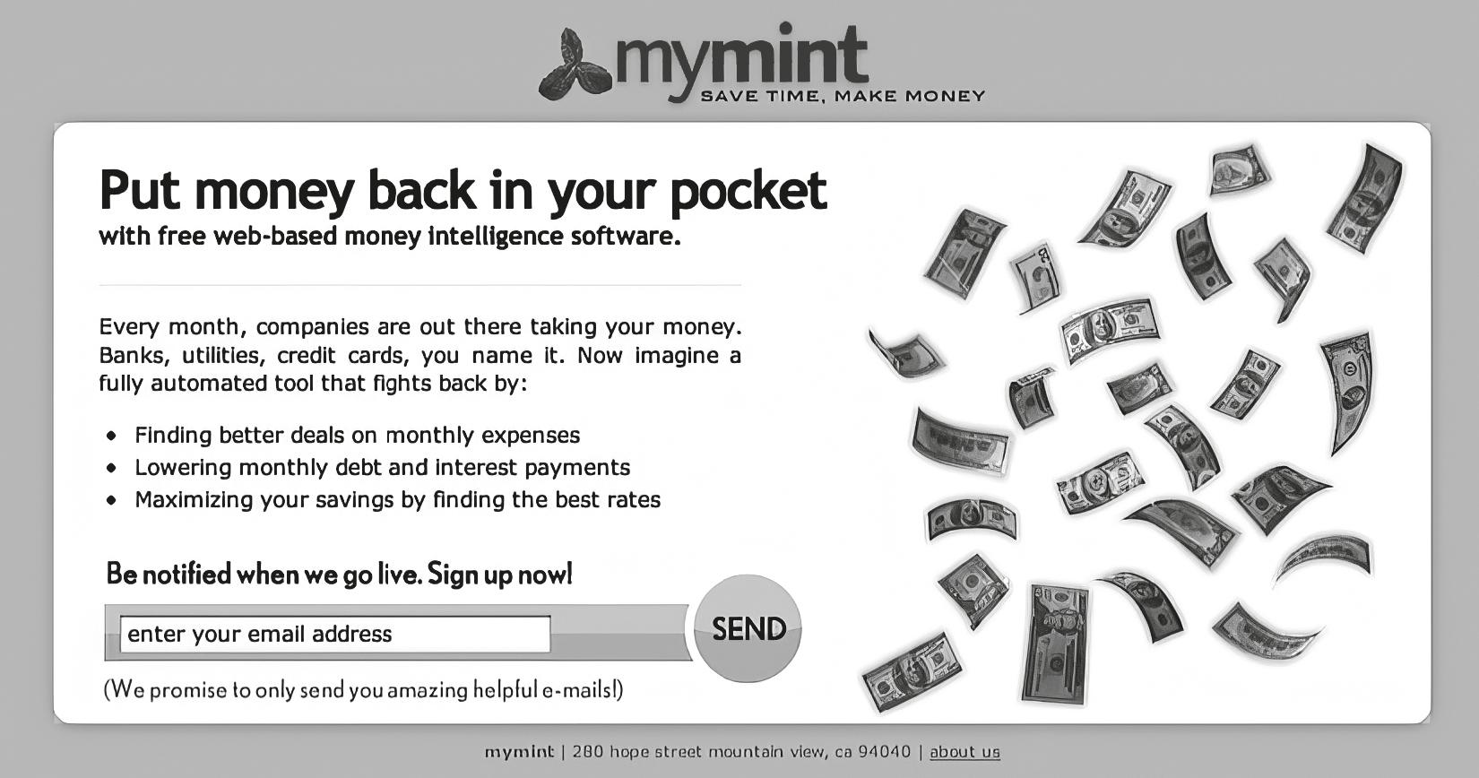 The original Mint.com homepage