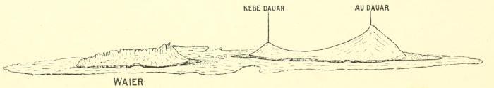 Dauar and Waier are surrounded by a continuous reef, which extends for a considerable distance towards the south-east, far beyond the region that was occupied by the other side of the crater of Waier. We must regard Dauar and Waier as the remnants of two craters, the south-easterly side of both of which having been blown out by a volcanic outburst, but in neither case is there any trace of a lava stream.