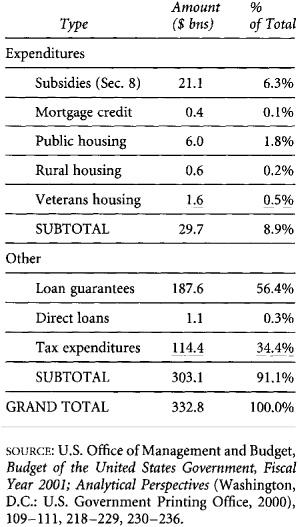 TABLE 1-2 U.S. Federal Housing Programs by Type of Tool, Fiscal Year 1999