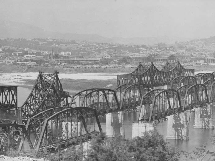 Like all the Japanese-built bridges in Korea, those over the Han River at Seoul were very strongly constructed and proved to be difficult targets to bomb. (US National Archive)