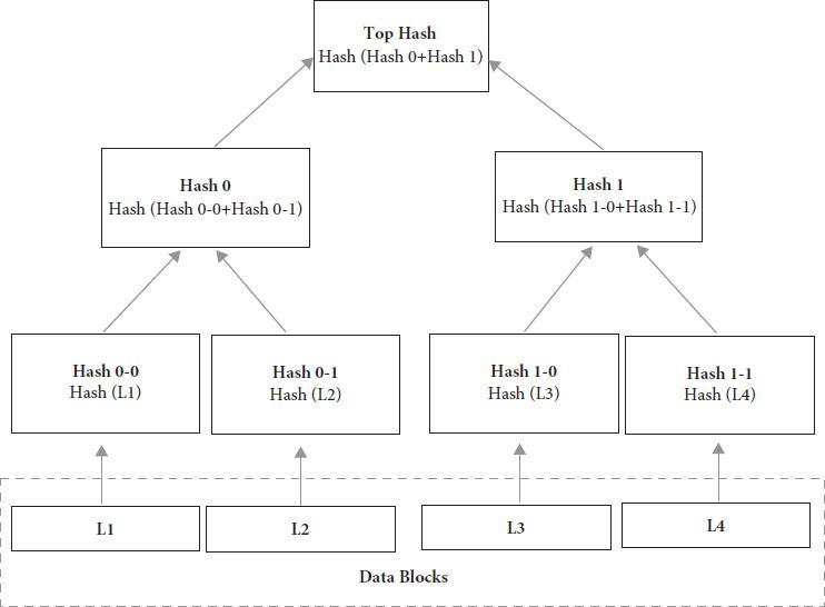 In the particular case of DLTs like blockchain, the algorithms are organised using a mathematical structure of branching nodes following a Merkle hash‑tree pattern (Figure 2), which was supported by the patent US4309569A.58 The patent was granted to Ralph Merkle, who filed it in 1979; however, the expiration of the patent in 1999 has allowed developers to incorporate the concept freely into new inventions and diffuse it through the incorporation of OS software.