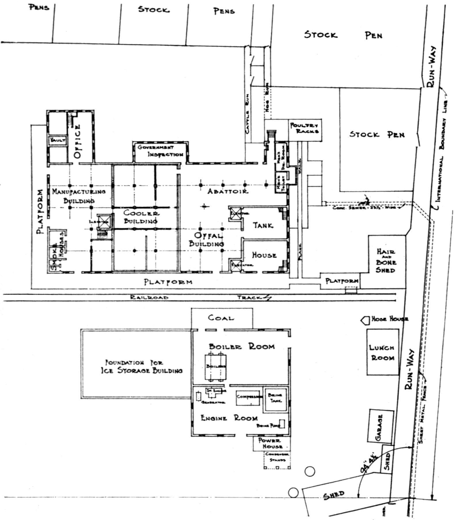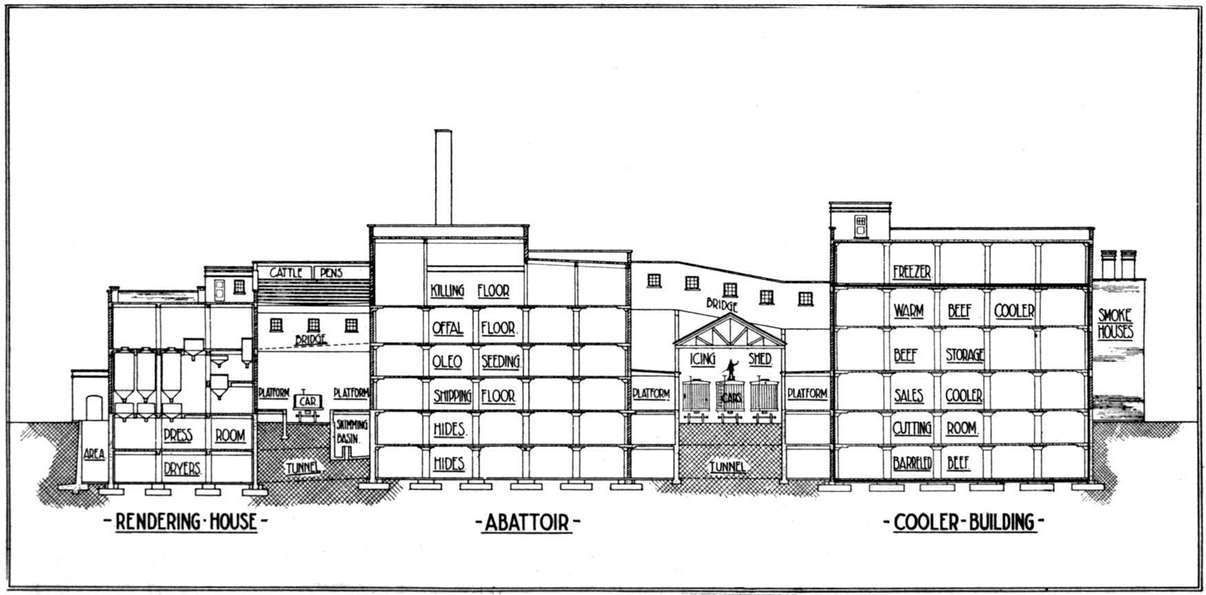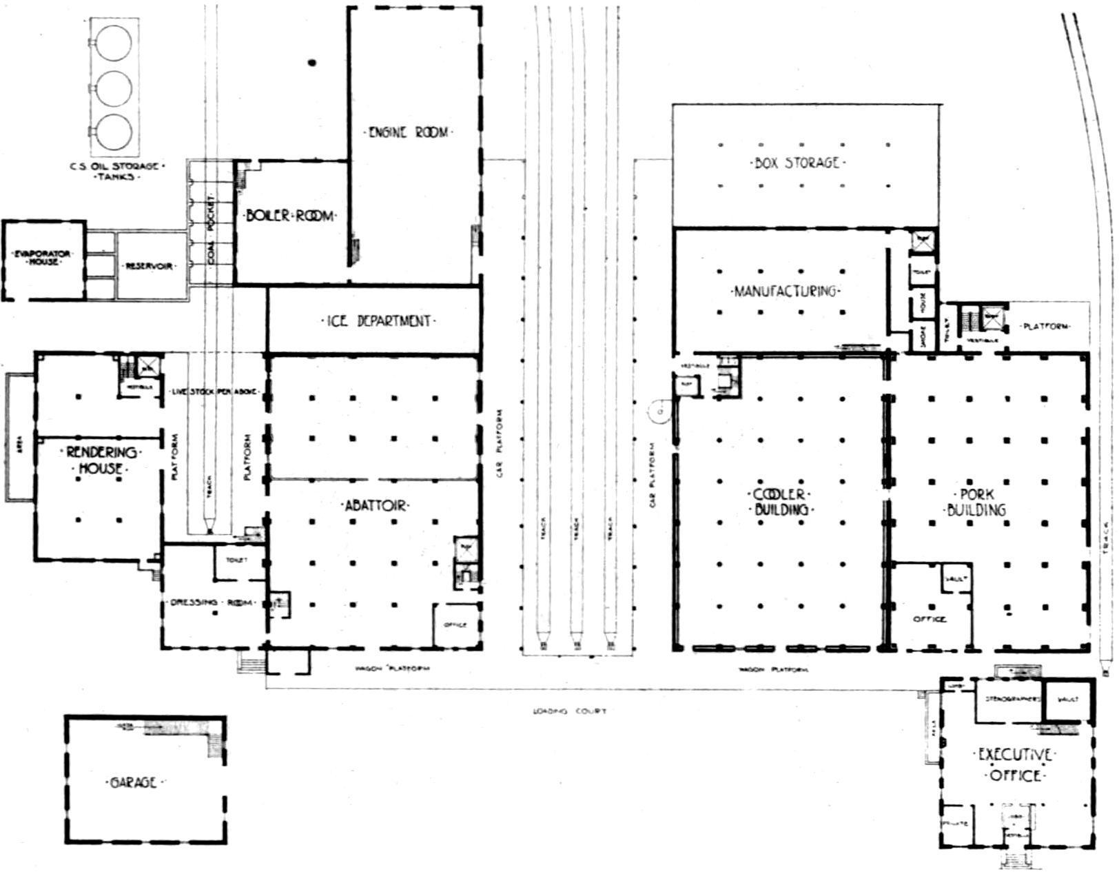 RENDERING BUILDING — LIVE STOCK — ICING DEPARTMENT — COOLER BUILDING — PORK