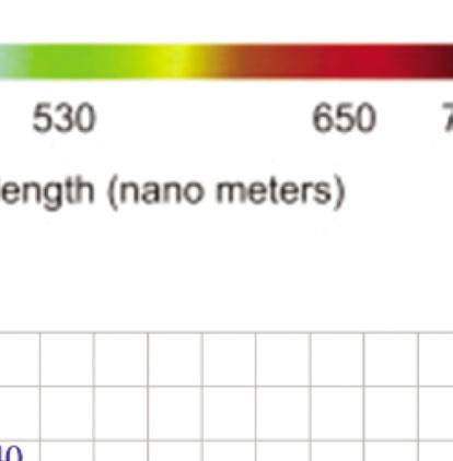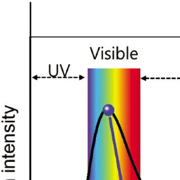 The optical region, which is the wavelength region responsible for light and solar energy conversion, consists of the infrared region (IR), the ultraviolet region (UV), and the visible-light region ranging in wavelengths from 400–700 nm. Wavelength and frequency hold the relationship [1]: