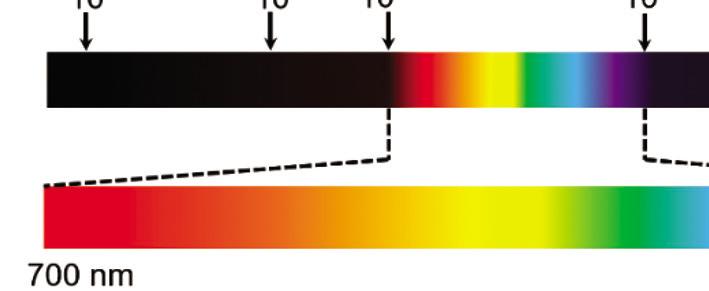 Figure 1.1 Spectrum of the electromagnetic radiation with visible light highlighted.