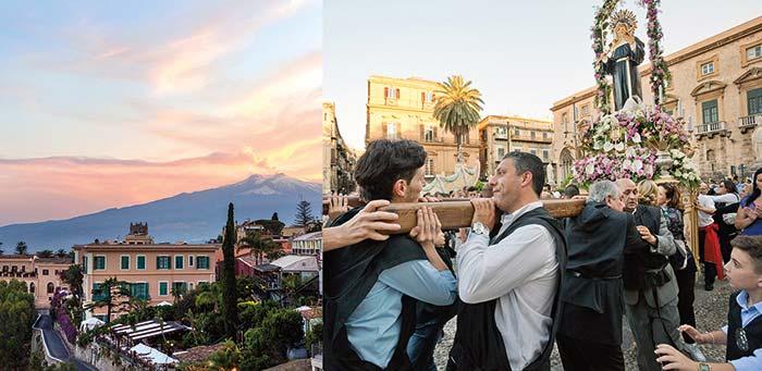 Taormina, in Mount Etna’s shadow; locals celebrating one of Sicily’s many religious processions