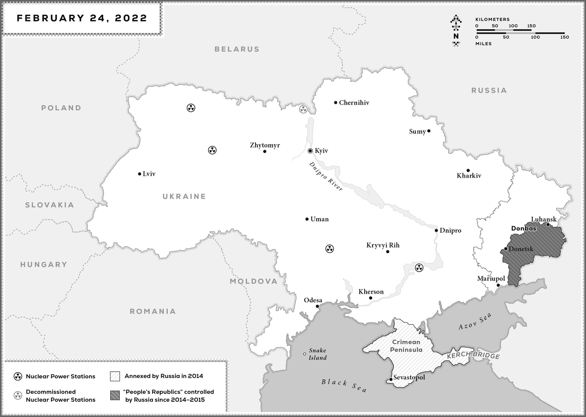 The invasion had started. All over Ukraine, Russian missiles and bombs were falling on Ukrainian military bases, airfields, air-defense batteries, logistics hubs, and government installations. Long columns of tanks, fighting vehicles, artillery, and trucks carrying soldiers poured in from the north, south, and east, sweeping away the useless border fences. They met little initial resistance.