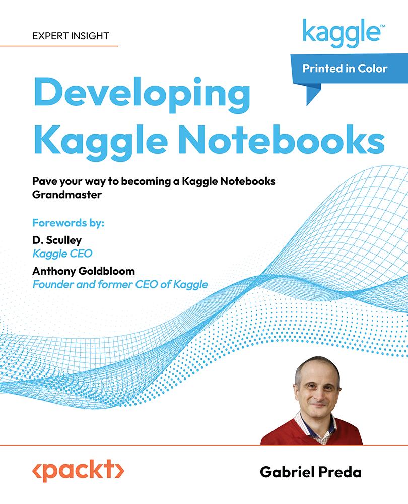 Gabriel is a triple Kaggle Grandmaster, with a seven-year tenure on Kaggle. He ranked 2nd in Datasets and 3rd in Notebooks. Some of his notebooks and datasets are the most upvoted by the community in the past. With his immense expertise filled within the pages of this book, those who complete this book should be able to confidently create great notebooks with a high impact on the community and, therefore, share their knowledge and engage with the community.