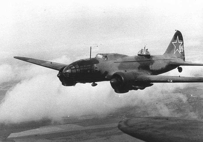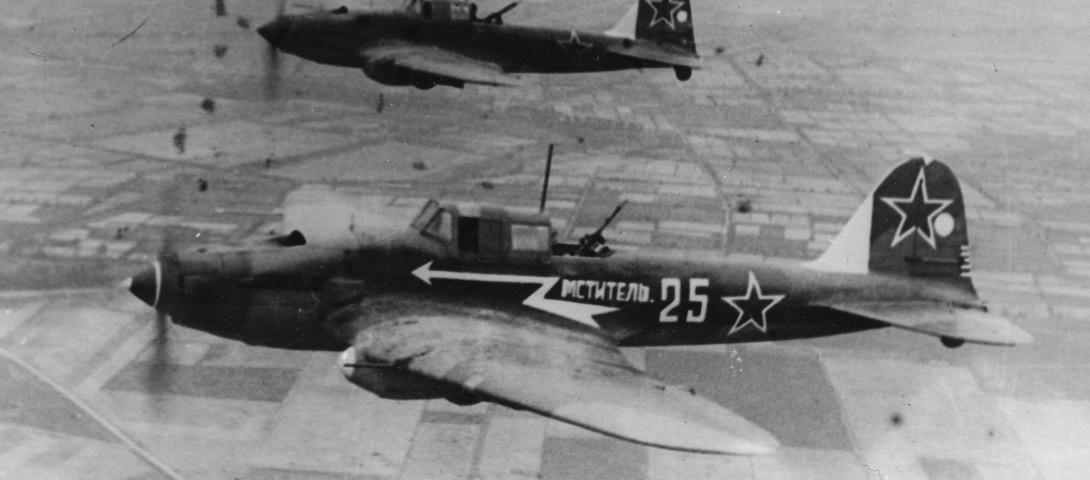A formation of Pe-2 light bombers. Less well-known that the Shturmovik, the Pe-2 equipped most of the frontal aviation bomber regiments during the war. The aircraft was extremely versatile, serving in leveland dive-bombing roles, and as the dominant VVS late-war reconnaissance aircraft. (Courtesy of the Central Museum of the Armed Forces, Moscow via www.Stavka.photos)