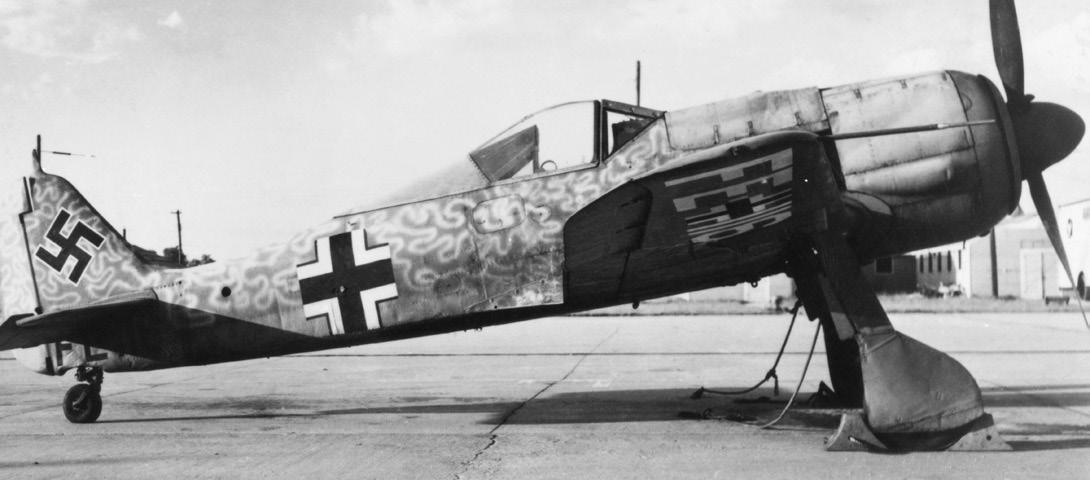 A specialized Fw 190, designated the Sturmbock (battering ram), was developed to increase the ability of German fighters to bring down US heavy bombers. The Sturmbock received heavier protection around the cockpit and ammunition boxes and carried two 30mm cannon rather than the 190’s normal 20mm versions. Massed formations of the fighters were intended to close on US bombers from the rear and attack with the cannons which, despite their slow rate of fire, could do significant damage at close range. With 400lb of additional weight, however, the Sturmbock was at a major disadvantage in any air-to-air combat situation when numbers were rushed to the Eastern Front in 1945.