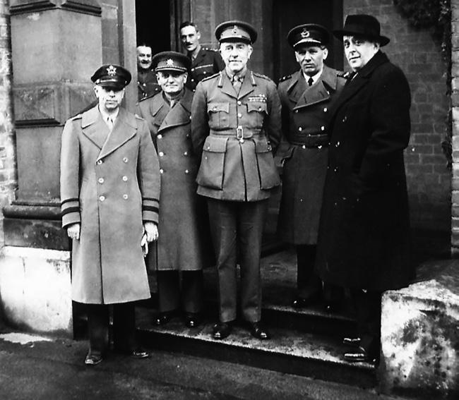 BrigGen Edmund Hill, US Army; Gen Ingr, Minister of Defence and C-in-C Czechoslovak Forces; LtGen Harold Franklyn, GOC British Troops in Northern Ireland; AVM Janoušek, Inspector-General Czechoslovak Air Force; and Jan Masaryk, Foreign Minister and Deputy Prime Minister. (IWM)