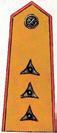 (1943–11 May 1945) 4–2 stars above crossed swords, on shoulder straps with gold wire edging inside branch-colour piping.