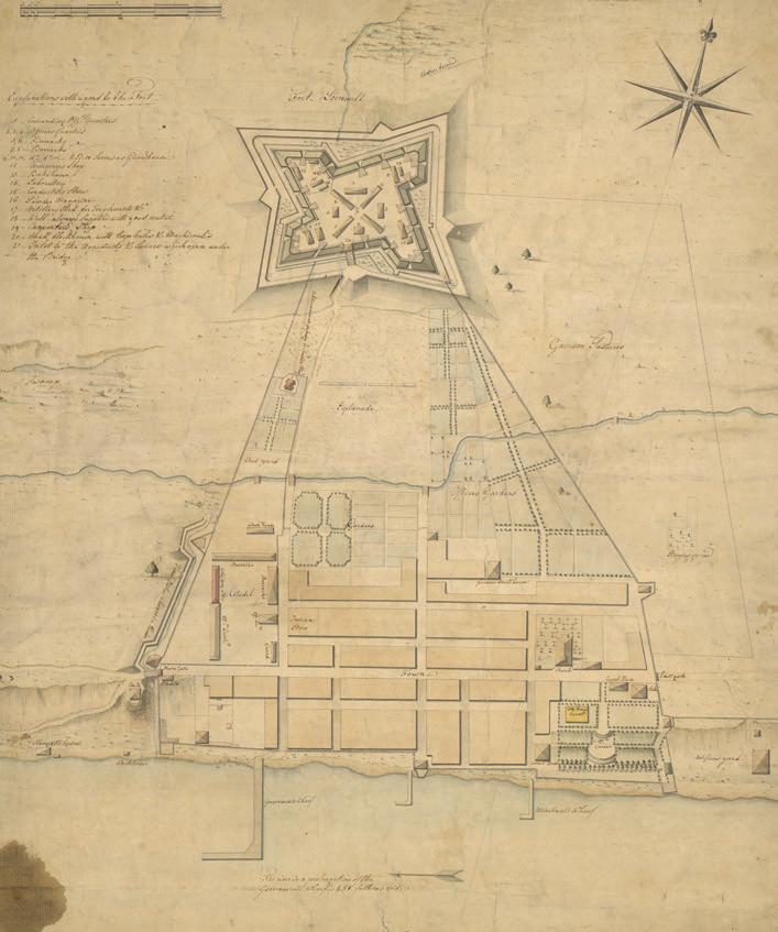 Detroit’s Fort Lernoult was typical of the poorly maintained and understrength prewar forts garrisoned by both sides on the Canadian frontier. (Manuscript, 1799, William L. Clements Library, University of Michigan)