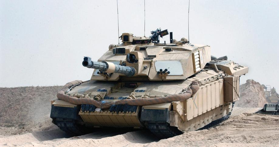 A Challenger 2 patrols outside Basra, 2004. In total, 116 Challenger 2 tanks were deployed for the invasion of Iraq in 2003, separated into eight squadrons of vehicles and distributed between four major battlegroups. This vehicle belongs to A Squadron, Queen’s Royal Lancers (QRL). (Graeme Main/MOD/OGL v1.0)