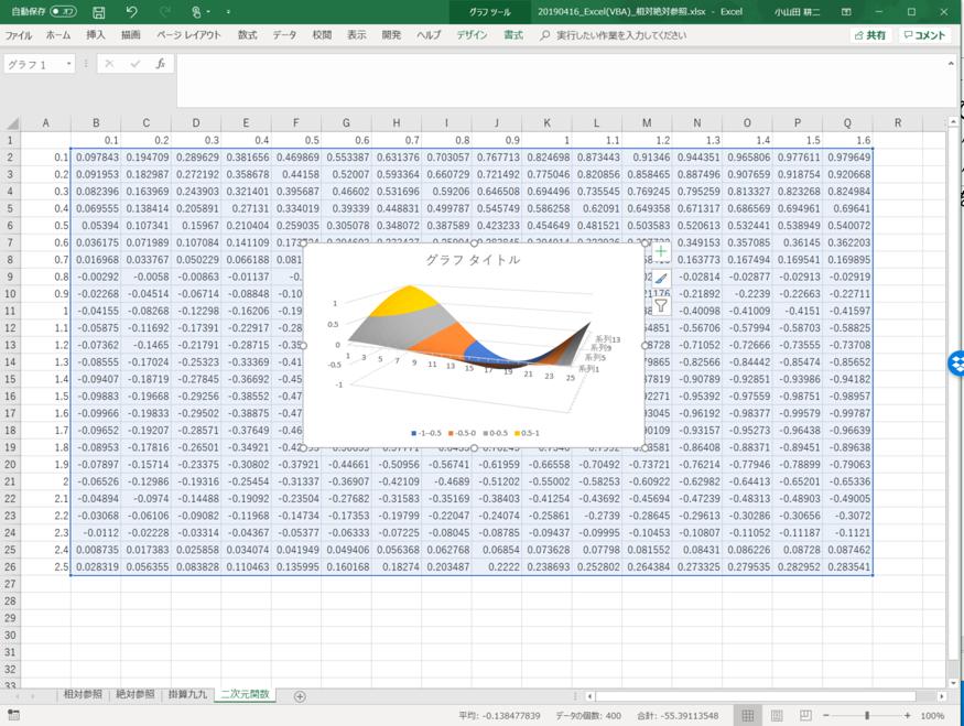 Aconcreteexampleisusedtoexplainthis.Thefollowingisatwodimensionalfunction: f (x,y )=sin(x) · cos(2y ).Calculate f (x,y )usinga variablevalue(y )incolumnAandvariablevalue(x)inrow1(Figure1.9).