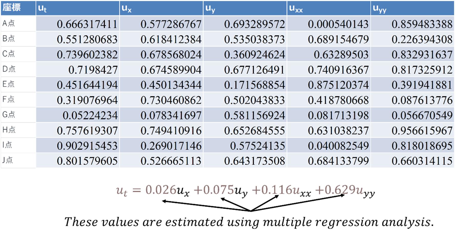 forthephysicaldata(u)ateachofthemultiplecoordinatepointsineach Excelrow.Theregressionanalysistoolallowsyoutoanalyzethedegreeof impactofeachpartialderivativeon u [1].Asaresult,aPDE