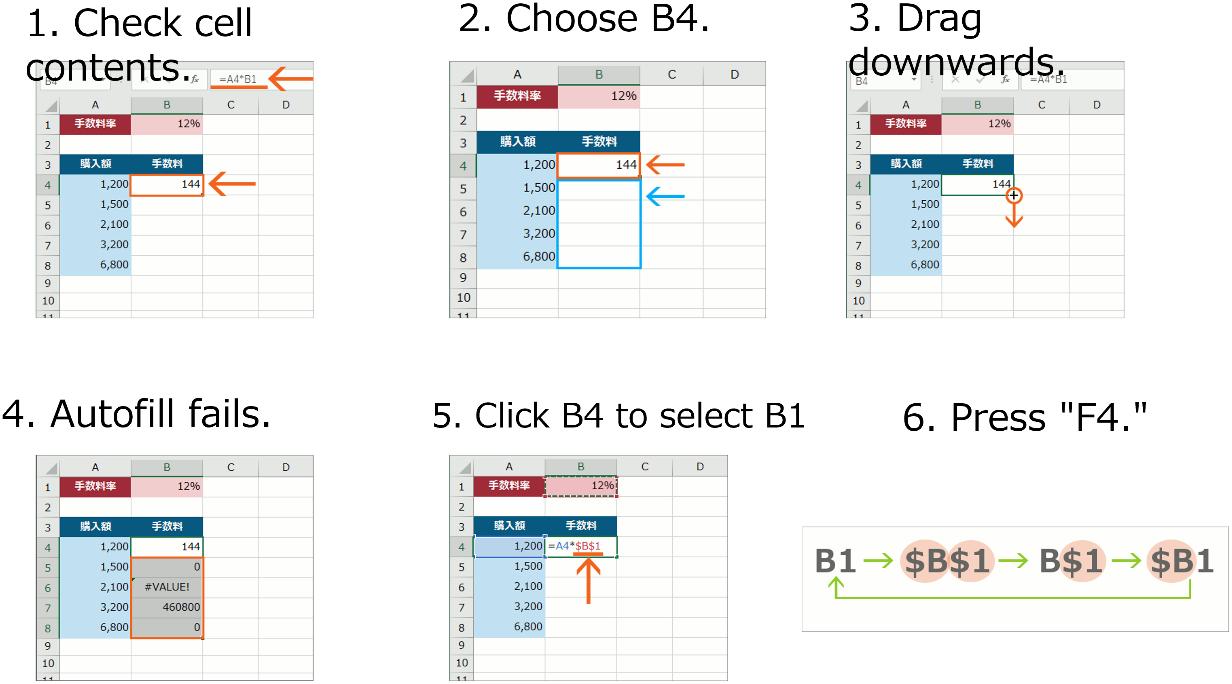 Theabsolutereferencefunction,whichpreventsthereferencedestinationinacellfrombeingchangedafterthecellhasmoved,isusefulfor writingformulas.Whendatathatuse“absolutereference”areduplicated, thereferencedestinationintheduplicatedcellisnotchanged,allowingyou tomanagedataefficiently(Figure1.7).