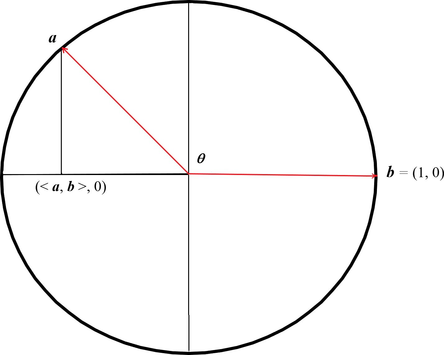 Example4. Suppose a and b =(1, 0)aretwovectorsin R2 where a =1withanglebetween a and b = θ .Showthat a, b =cos θ ,as isrepresentedinFigure1.1.