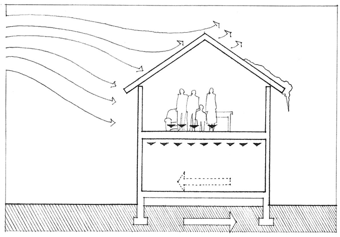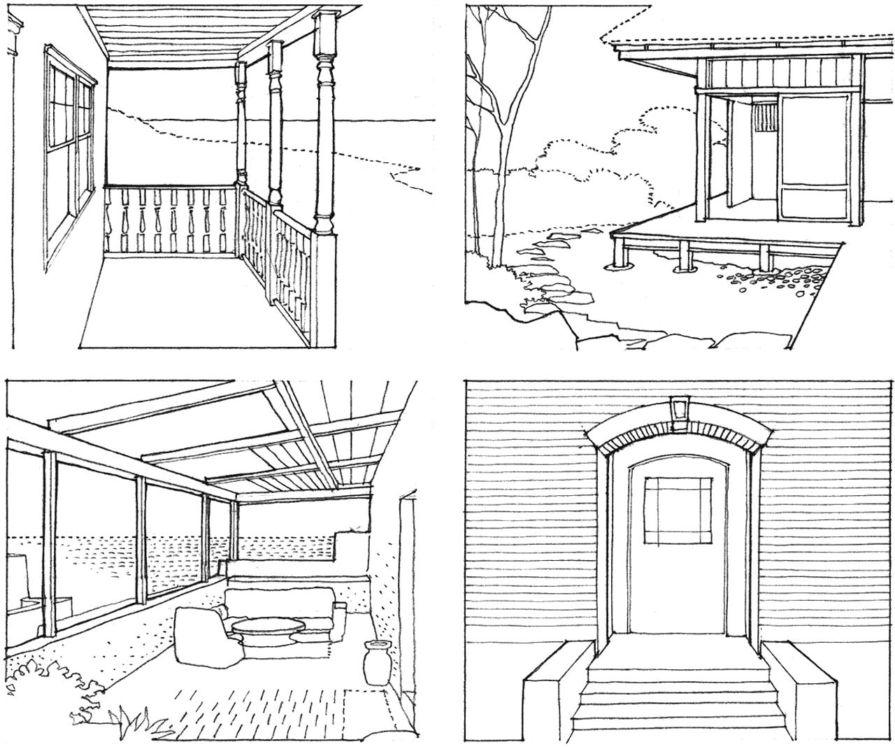 Special transitional spaces, belonging to both the outside world and the inside, can be used to mediate between the two environments. Familiar examples include a porch, a veranda, or an arcaded gallery.
