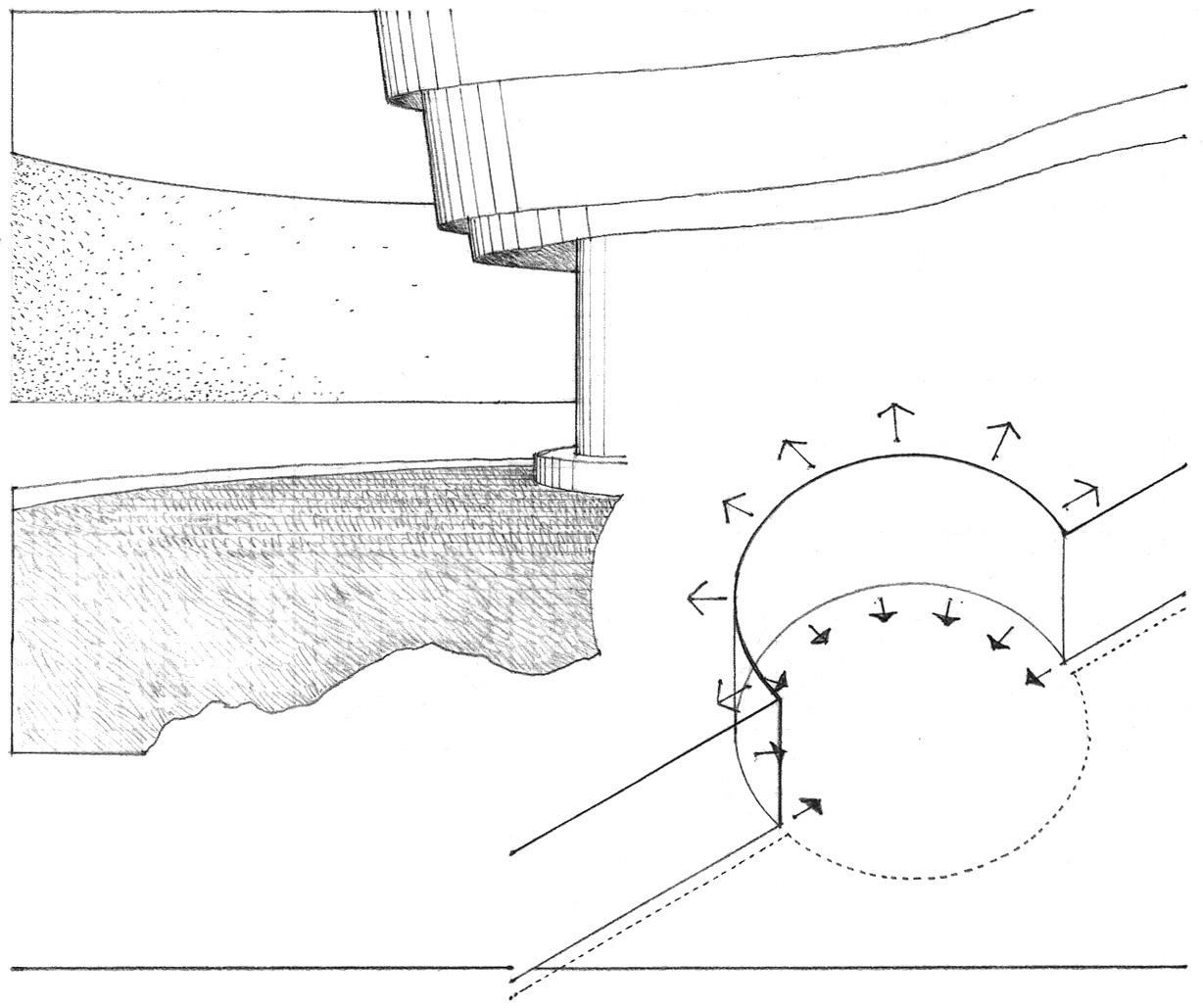 A building’s structural system is formed according to the geometry of its materials and the way they react to the forces applied to them. This structural form and geometry, in turn, influence the dimensions, proportion, and arrangement of the interior spaces within the building volume.