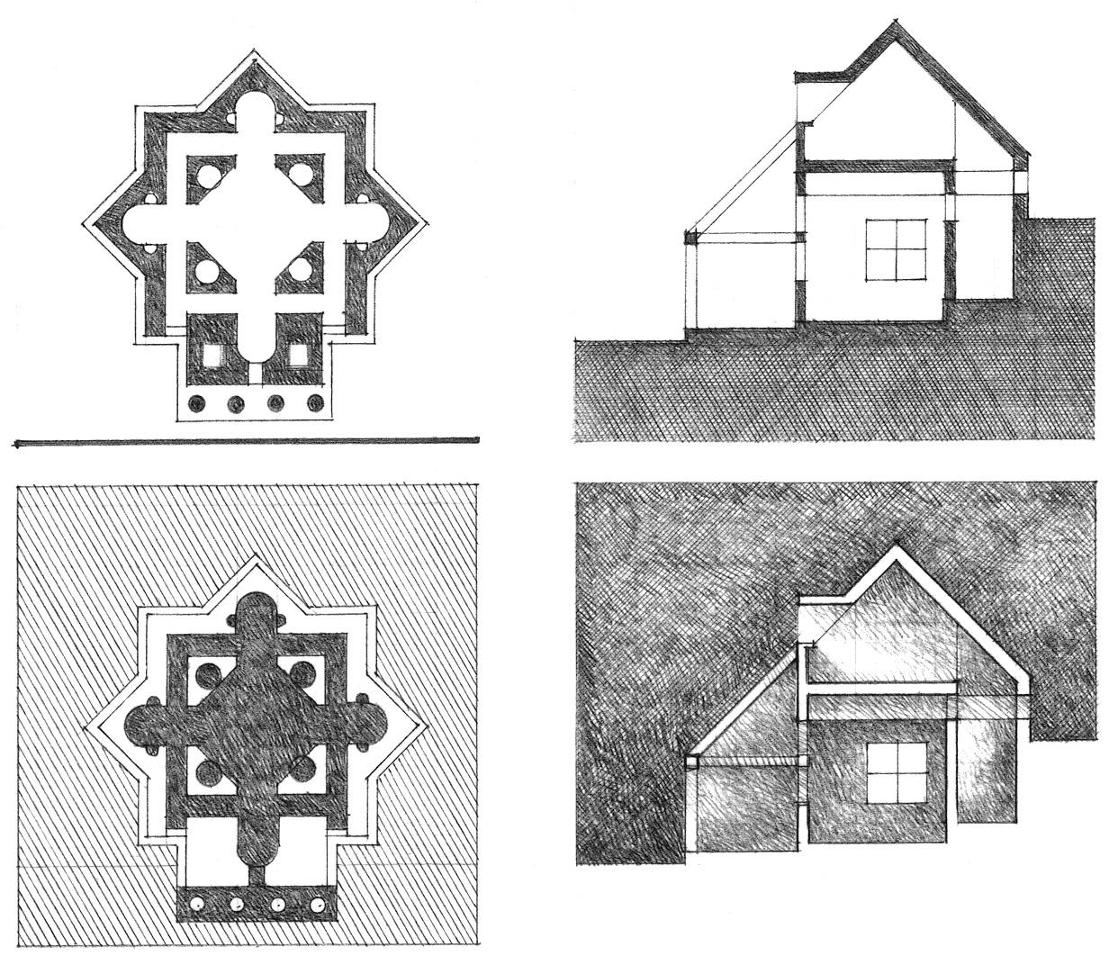 Pyramids, domes, and similar roof forms can emphasize the centrality of square spaces.