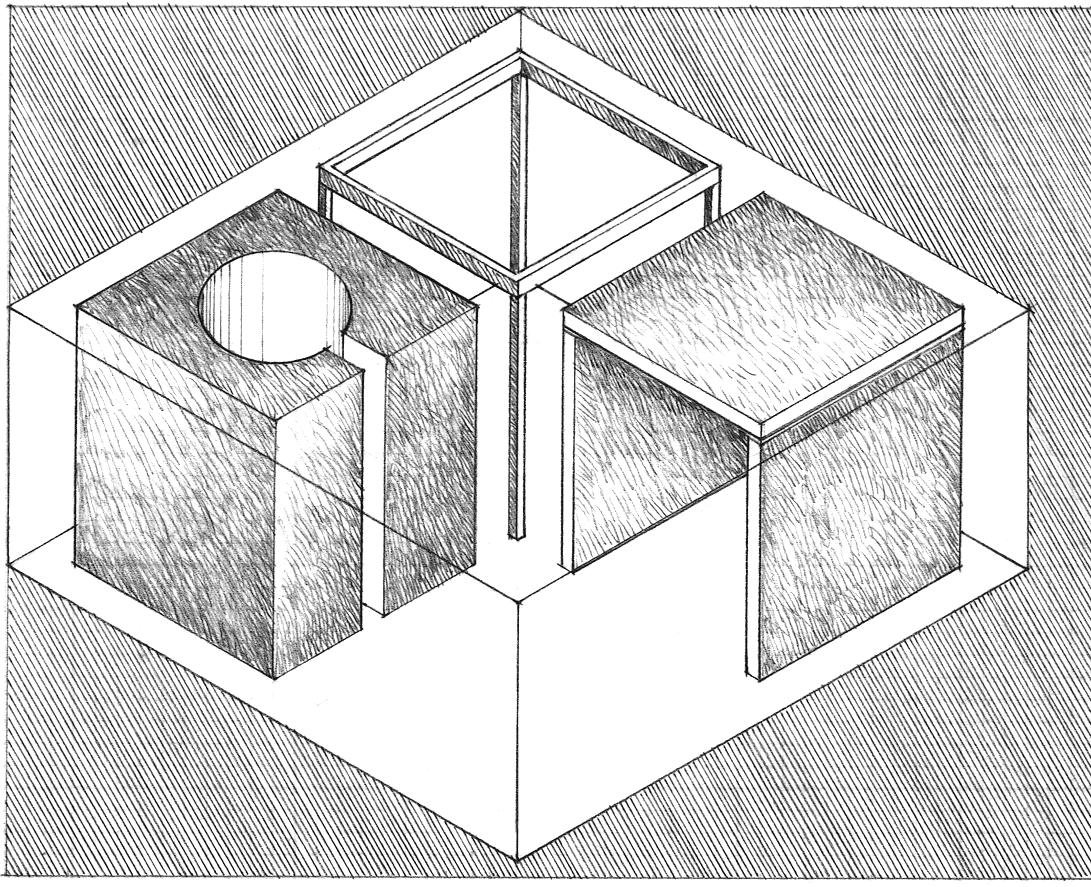 Space is not a material substance like stone and wood. It is inherently formless and diffuse. Universal space has no defining borders. Once an element is placed in its field, however, a visual relationship is established. As other elements are introduced into the field, multiple relationships are established between the space and the elements, as well as among the elements themselves. Space is formed by our perception of these relationships.