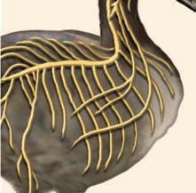 Life forms a hierarchy of organization from atoms to complex multicellular organisms. Atoms are joined together to form molecules, which are assembled into more complex structures such as organelles. These in turn form subsystems that provide different functions. Cells can be organized into tissues, then into organs and organ systems such as the goose’s nervous system pictured. This organization then extends beyond individual organisms to populations, communities, ecosystems, and finally the biosphere.