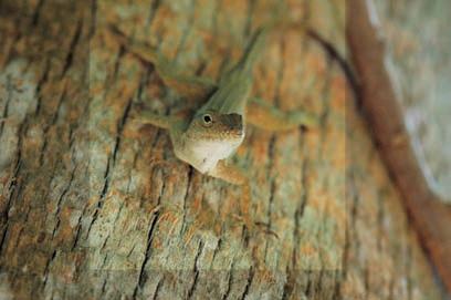 Figure 55.3 Behavioral adaptation. In open habitats, the Puerto Rican crested lizard, Anolis cristatellus, maintains a relatively constant temperature by seeking out and basking in patches of sunlight; as a result, it can maintain a relatively high temperature even when the air is cool. In contrast, in shaded forests, this behavior is not possible, and the lizard’s body temperature conforms to that of its surroundings.