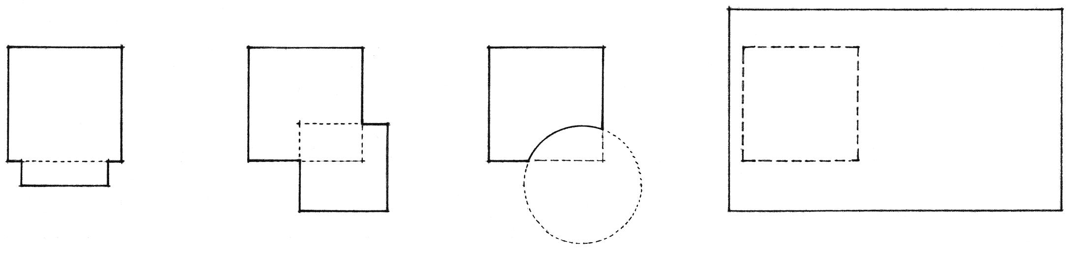 Both square and rectangular spaces can be altered by addition or subtraction, or by merging with adjacent spaces. These modifications can be used to create an alcove space or to reflect an adjoining element or site feature.