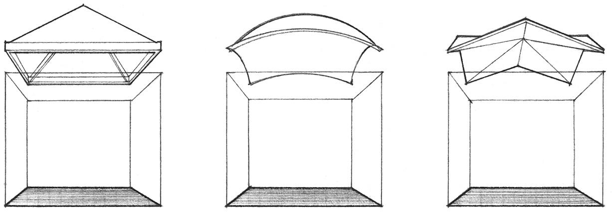 Pyramids, domes, and similar roof forms can emphasize the centrality of square spaces.