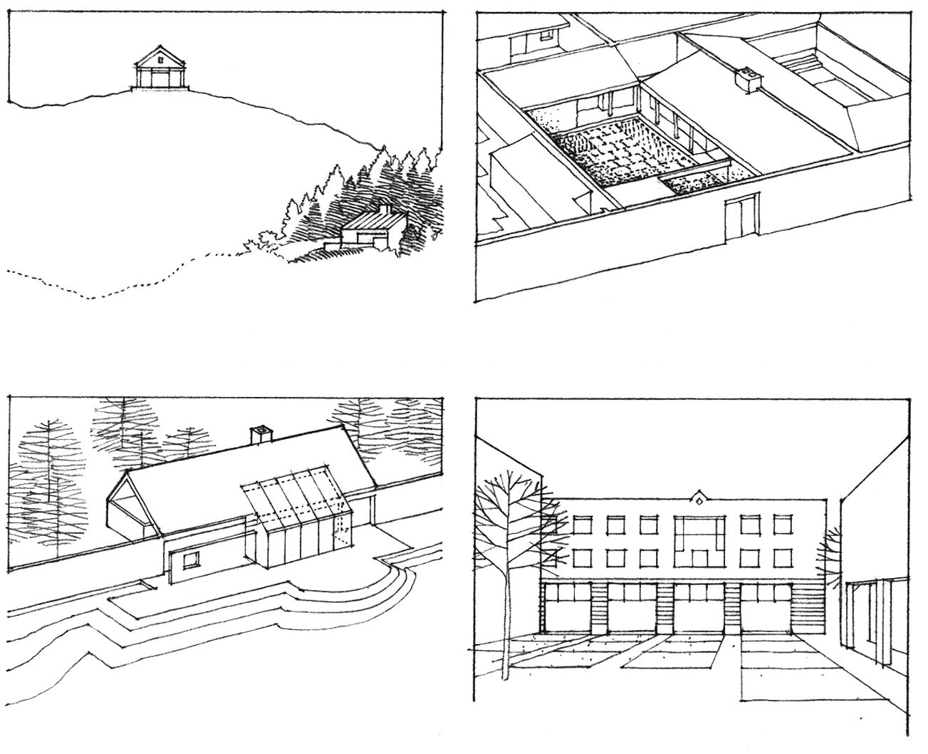 A building can be related to its site in several ways. It can merge with its setting or dominate it. It can surround and capture a portion of exterior space. One of its faces can be made to address a feature of its site or define an edge of exterior space. In each case, due consideration should be given to the potential relationship between interior and exterior space, as defined by the nature of a building’s exterior walls.