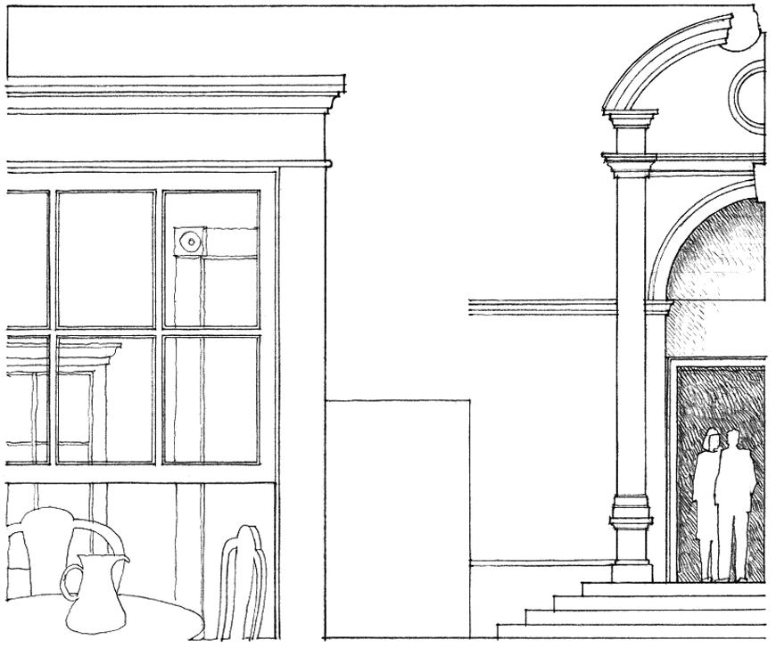 Windows and doorways, the openings that penetrate a building’s exterior walls, are the spatial transitions between exterior and interior space. Their scale, character, and composition often tell us something about the nature of the interior spaces that lie between them.