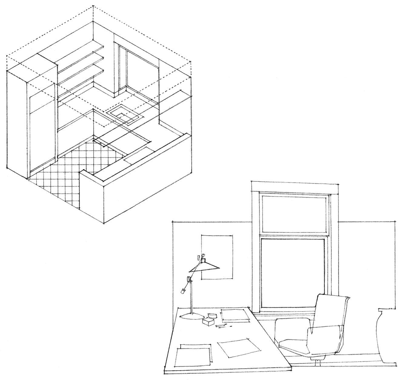 Since interior design is to a great extent a visual art, drawings are used extensively in this book to convey information, express ideas, and outline possibilities. Some of the illustrations are quite abstract; others are more specific and particular. All of them, however, should be viewed essentially as diagrams that serve to demonstrate design principles or to clarify the relationships existing among the elements of design.