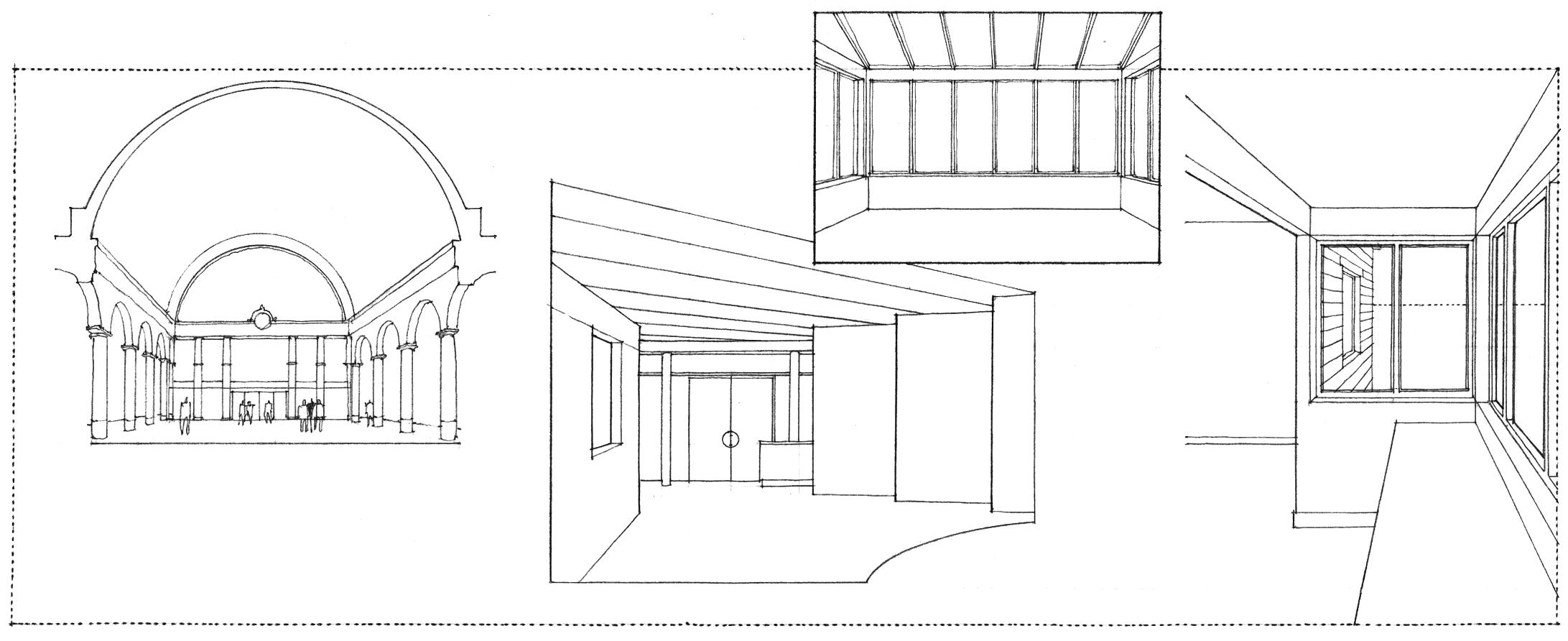 A space whose length greatly exceeds its width encourages movement along its long dimension. This characteristic of linear spaces makes them suitable for use as gallery spaces or as connectors of other spaces.
