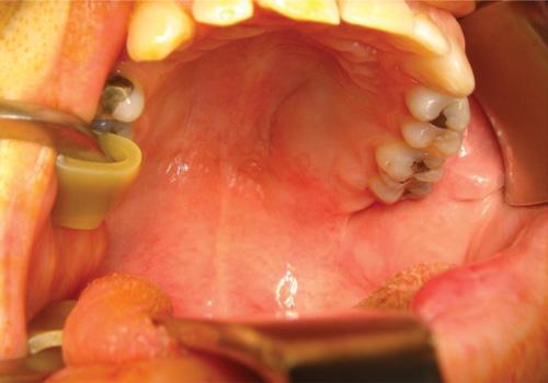 FIGURE 6.1 This transoral photograph shows mild submucosal fullness of the left aspect of the hard palate.