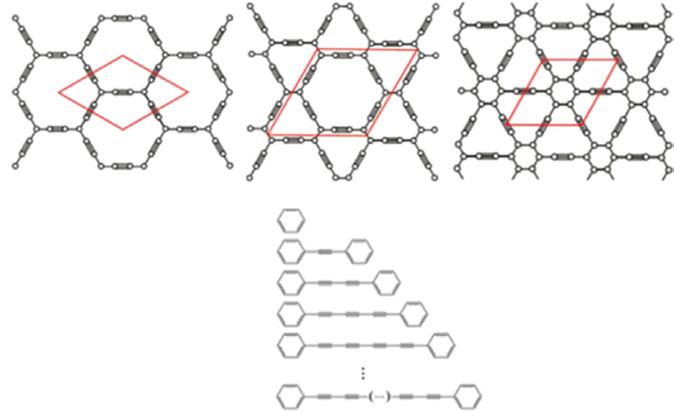 inserting acetylene bonds between two carbon atoms in different ways [38]. The structure shown in Figure 1.3b is formed by graphite diacetylene when two acetylene bonds are inserted [39]. Acetylene chains of different lengths will generate a series of graphitic alkynes, such as graphitic alkynes, graphitic dialkynes, graphitic trialkynes, and graphitic tetrapyne. [41]