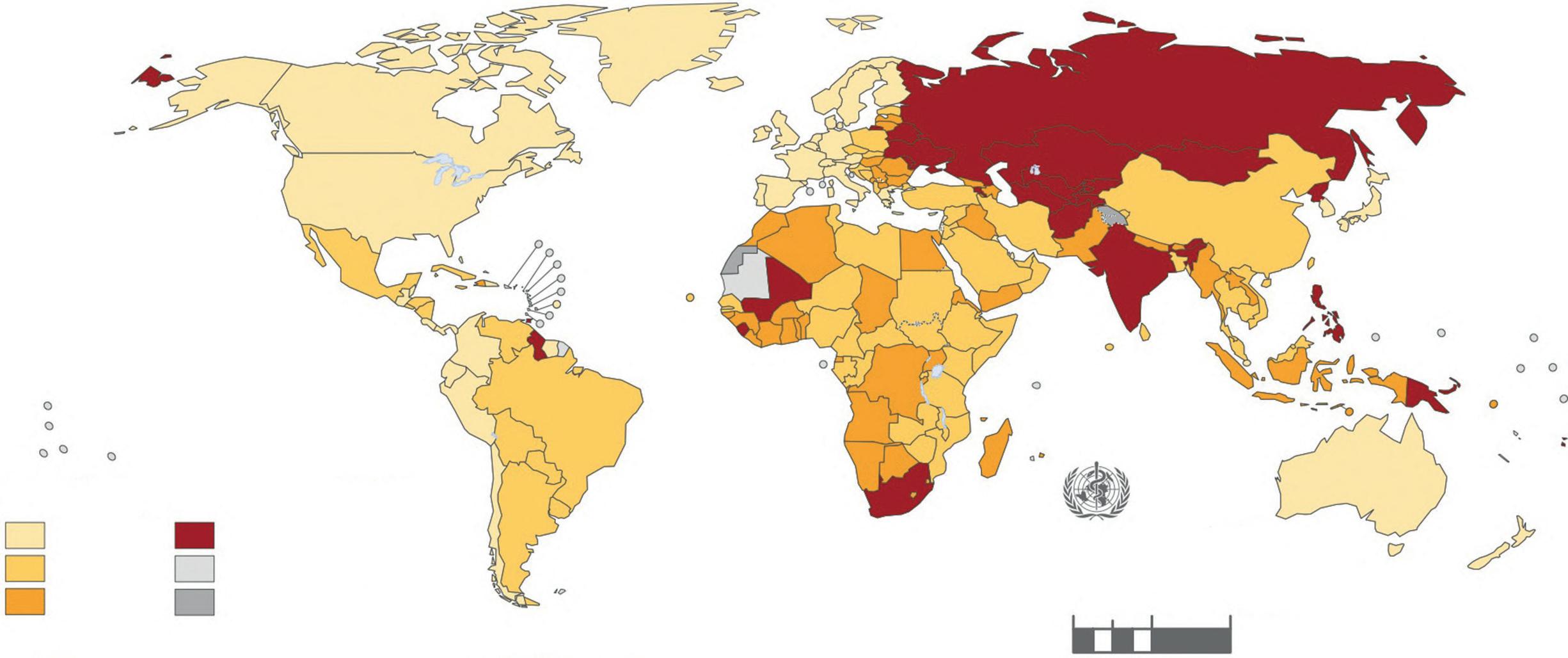 FIGURE 3.4 Map of the world showing estimated gains in life expectancy with elimination of physical inactivity.