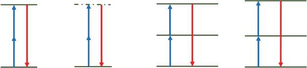 Figure1.1 Basicenergy-leveldiagramsdepictingtypicalanti-Stokesprocesses.