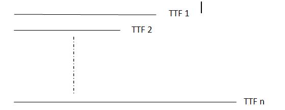 In this case, failure instants were observed on “n” components (or products) assumed to be identical. This is equivalent to MTTF (Mean Time To Failure), as there are no maintenance actions. This can be illustrated by Figure 1.5.