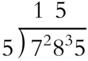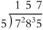 Set up with the dividend inside and the divisor outside, like this: . Look at the first digit in the dividend, 7. Can you divide 7 by 5? There is one 5 and 2 left over. Show that like this: