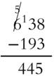 To begin, you need to “borrow” and regroup, because you can't subtract 3 from 1. Remember that the 8 tens become 7 tens and the ten we borrowed is added to the 1. Subtract 3 from 11 to get 8.