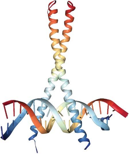 Figure1.4 X-raystructure ofGCN4dimerfrom S. cerevisiae forminga so-calledcoiledcoiland boundheretoDNA(PDB code1YSA).Source:Figure generatedwithNGLviewer.