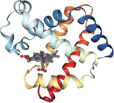 Figure1.2 X-raystructure(PDB code1MBN)ofmyoglobinfrom Physetercatodon.Theporphyrin cofactorisanchoredbetweensix alphahelices.Source:Figure generatedwithNGLviewer.