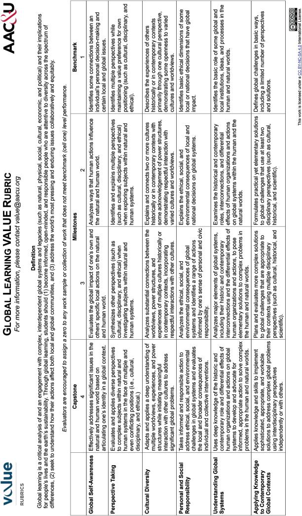 Figure 1.2 AAC&U Global Learning Value Rubric. Reprinted with permission from AAC&U, 2016.