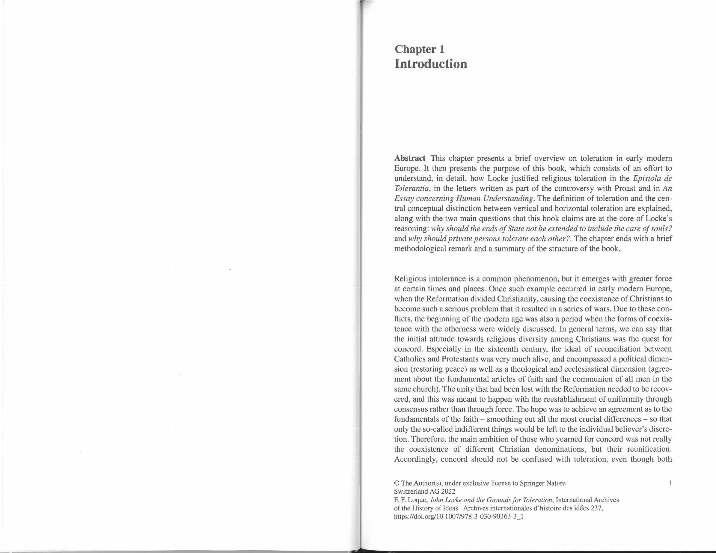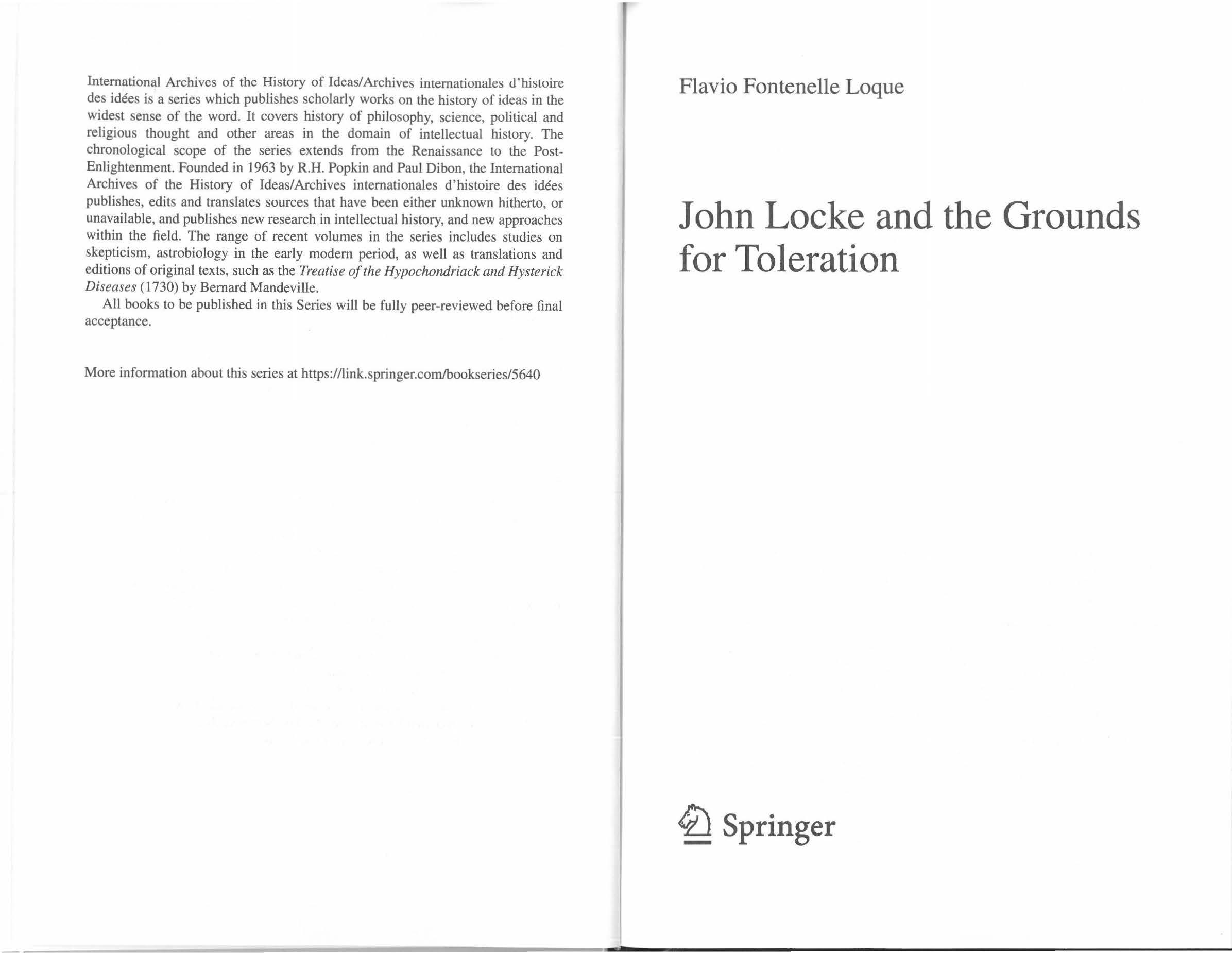 F. F. Loq ue , John Locke and the Grounds for Toleration , International Archives of the History of Ideas Archives internationales d'histoire des idees 237, https://doi.org/10 1007/978 -3-030-90363-3_1