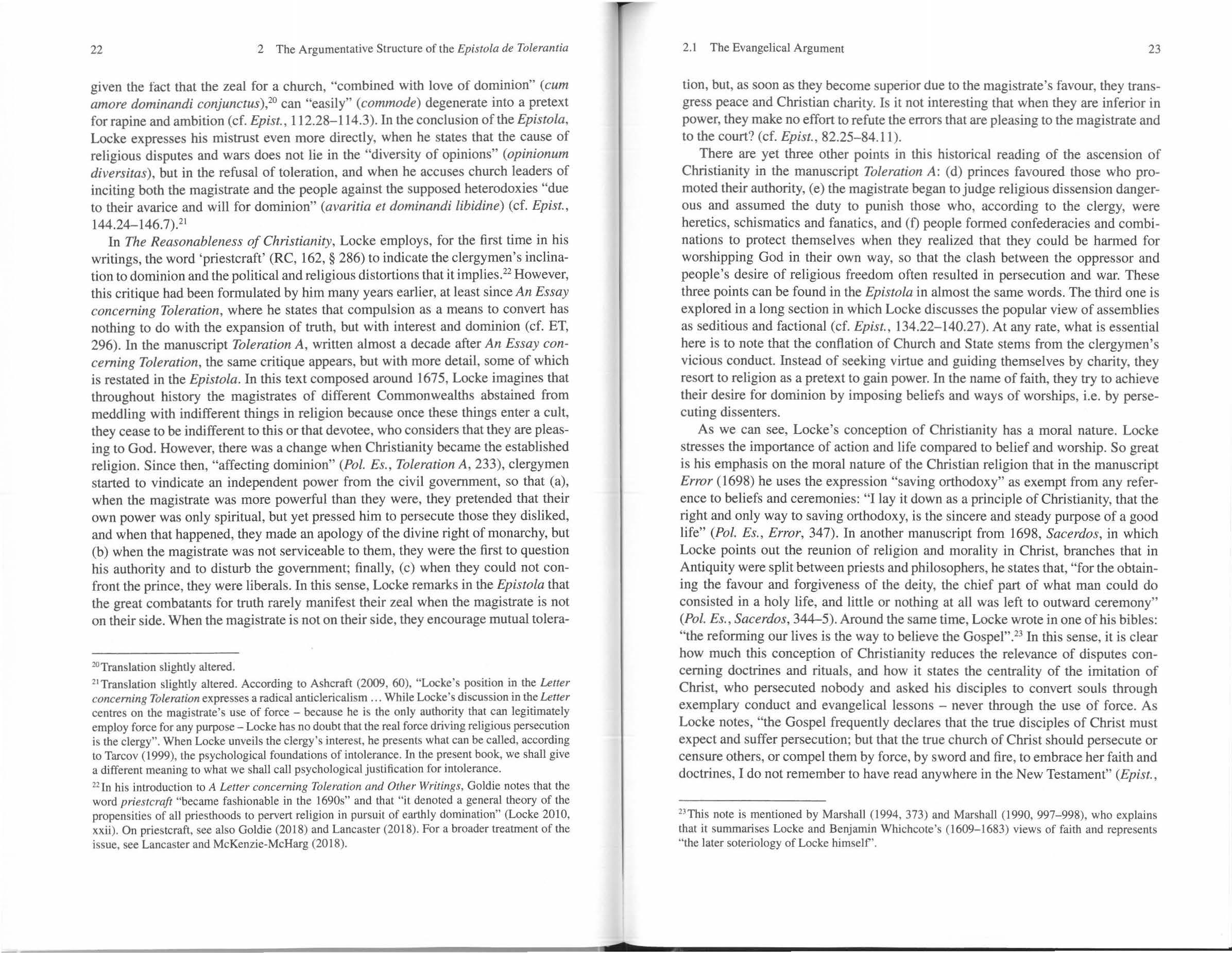 38 Goldie (1991) shows how Locke confronted the Augustinian legacy in the controversy with Proast, but he doe s not explore Locke's rebuttal of Augustine (focused on charity) in the Epistola. Goldie and Popkin (2006 , 102), Bejan (2015) and Vernon (1997, 9) touch upon this issue whereas
