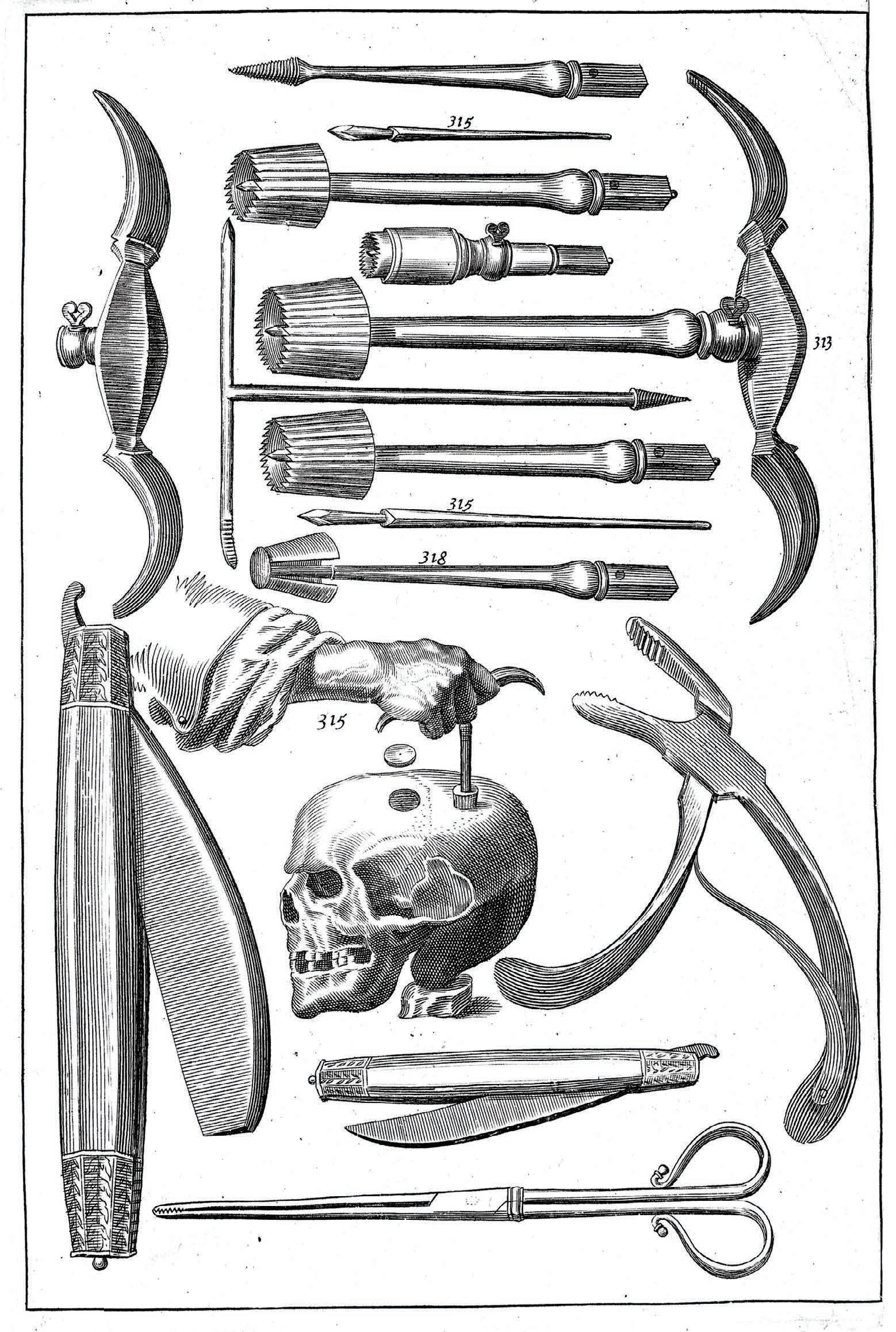 Plate 2. Seventeenth-century surgeon’s tools as depicted in John Woodall, The Surgeons Mate, 1639. The tools represented here are likely similar to those carried by Looker during his time on the Blackham Galley, on which he served as ship’s-surgeon. These would have been used in the surgical procedures which he describes, often graphically, in his ‘Journall’. Courtesy of the Wellcome Collection.