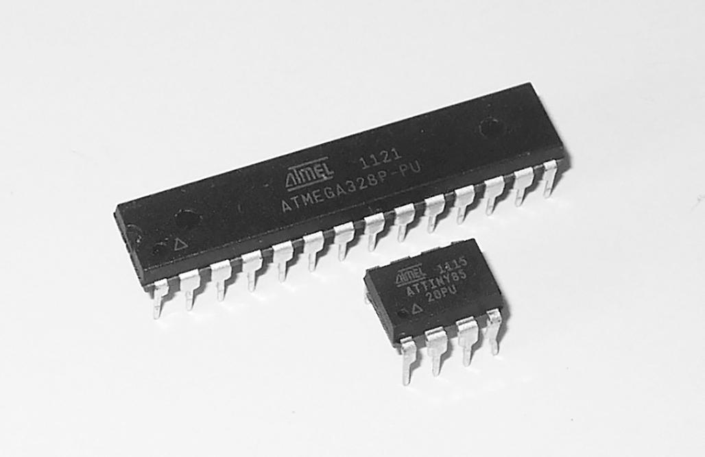 Figure 1-5: Our AVR microcontrollers, the ATtiny85 and ATmega328P-PU